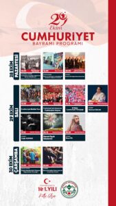 18.15: 29 Ekim Cumhuriyet Yürüyüşü- Yer: Debboy Mevkii – Atatürk Meydanı.