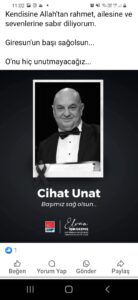 Araştırma Hastanesi’ nde yoğun bakımda tedavi altına alınan Giresun BOLAHENK Türk Müziği Derneği’ nin Kurucu Başkanı ve Şefi Cihan Unat yaşamını yitirdi.