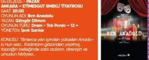 Etimesgut Belediyesi Emekliler Tiyatro ekibi, Güngör Dilmen’in kaleme aldığı “Ben Anadolu” isimli tiyatro oyununu sanatseverlerle buluşturdu.