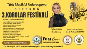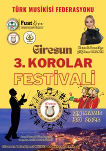 Türk Musikisi Federasyonu (TÜMFED) Giresun’da bir ilke imza atarak 29-30 Mayıs tarihlerinde 3.Korolar Festivali düzenleyecek. Giresun Musiki Cemiyeti Derneği’nin ev sahipliğinde ve Belediye Başkanı Fuat Köse’nin himayelerinde gerçekleşecek festival ile ilgili bir basın toplantısı düzenleyen Musiki Cemiyeti Derneği Başkanı Seher Ataün ile TÜMFED Yönetim Kurulu Üyesi ve koro şefi Muammer Usta, detaylı bilgiler vererek Giresunluları müzik şölenine davet ettiler.Toplantıda Giresun Musiki Cemiyeti Derneği’nin 2019 yılından bu yana TÜMFED üyesi olduğunu ve bundan da büyük onur duyduklarını belirten Ataün ve Usta şunları kaydettiler:” 68 yıldır Giresun’da sanat varlığını başarıyla sürdüren derneğimiz gerek Türk Sanat Müziği’nde gerekse Türk Halk Müziği’ nde çeşitli etkinlikler düzenleyerek yoluna devam etmektedir.İl dışında da olağanüstü başarıları ile adından söz ettiren derneğimiz, İskenderun’da yapılan Türk Musiki Federasyonu beste yarışmasına katılmış, ilimizi temsil eden Eda Bayraktar okuduğu eserle yarışmanın birincisi olarak bizlere büyük mutluluk yaşatmıştır. Düzenleyeceğimiz festivalde derneğimiz bünyesinde yetişen gururumuz Çiğdem Yarkın da konuk sanatçı olarak sahne alacak.”