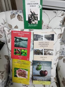 Dilkitaptan yayınlanan beş kitabı önümde.Gruptan günaydın deyince hemen aradım Asım abiyi kitaplarını albilir miyim dedim.Çarşıya dediğim yere hemen bırakınca çarşıya gitmecektim ama gittim.Dört adet Sahil Yolu Geçmeden serisi ve Giresunspor 9 Nisan kitabları okumasam bile inceledim. Bütün kitaplarını imzalamış sağolasın . Kitaplığımda bir eksik vardı o da tamamlandı.