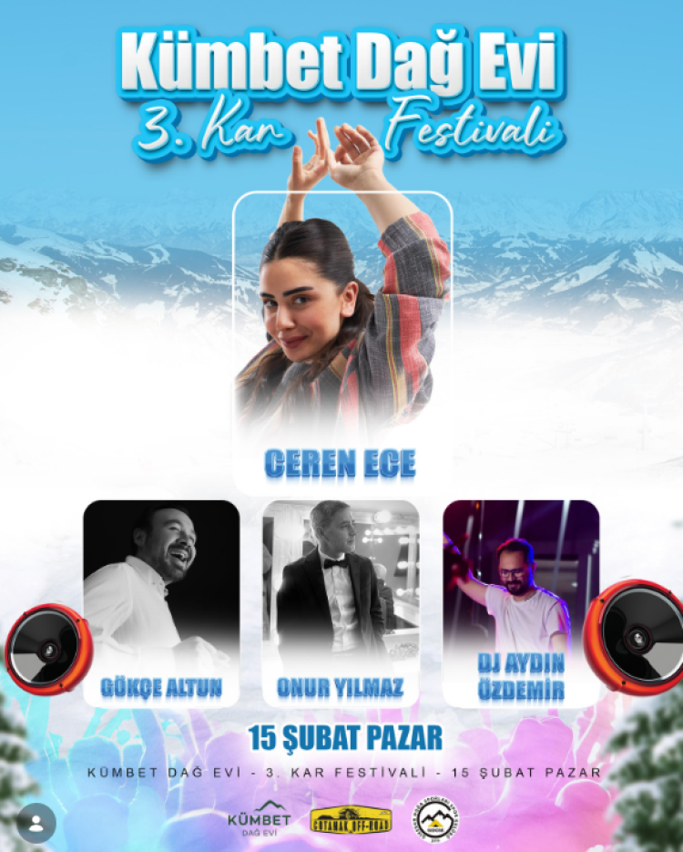 Festival alanında ayrıca köfte ekmek, sucuk ekmek, salep, kestane ve mısır gibi yiyecek stantları yer alacak. Off-road turu ve doğa gezileri gibi etkinlikler ise ekstra ücretli olarak gerçekleştirilecek. Çotanak Off Road ve GİDOSK Dağcılık topluluklarının da katılım sağlayacağı organizasyon, Kümbet’te kış turizmine hareketlilik kazandırmayı hedefliyor.